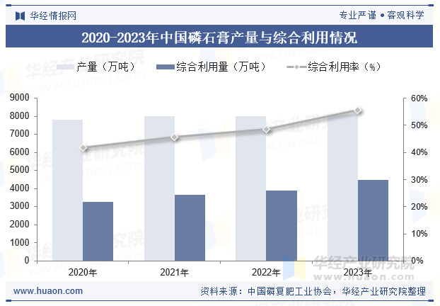 磷石膏是困扰磷肥,乃至磷化工产业发展的“卡脖子”问题,尤其是此前很多省份出台或者拟出台了“以消定产”的产业政策,倒逼企业重视并积极解决磷石膏问题。综合利用和无害化堆存依然是我国处理磷石膏问题的两个主要途径。据统计,2023年我国磷石膏产生量为8100万吨,综合利用量达到4500万吨,综合利用率达到55.6%,呈现出大幅度提升的态势。