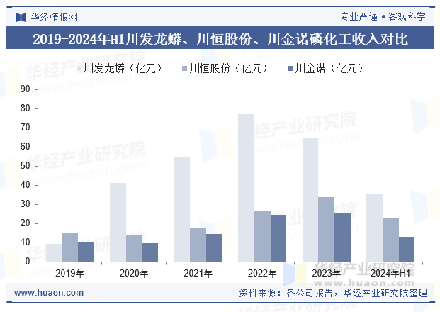 川发龙蟒在川鄂两省四地形成磷矿410万吨/年产能、磷酸盐及肥料产品210万吨/年产能,产品远销全球40多个国家和地区,部分产品市场份额全球第一,2024年上半年公司磷化工业务收入为35.25亿元,同比增长11.71%。川恒股份磷矿设计生产能力300万吨/年,磷酸盐产品产销能力约100万吨/年,2024年上半年公司磷化工业务收入为22.75亿元,同比22.75亿元,同比增长30.06%。川金诺是一家专注于磷化工产业发展的上市企业,目前拥有四大产业基地:昆明制造基地、广西制造基地、新能源材料制造基地、技术研发基地,2024年上半年公司磷化工业务收入为13.28亿元,同比增长24%。