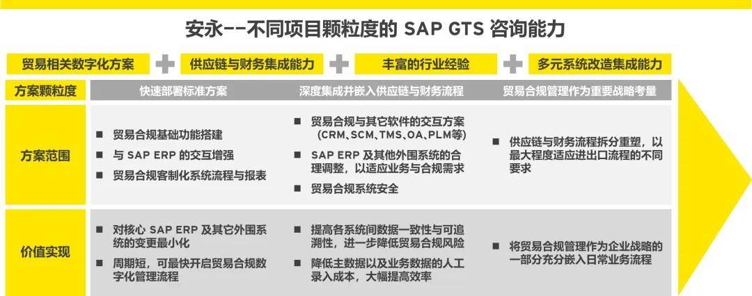 立足中国,兼备美洲、亚太、欧洲等地区的国际贸易咨询与实施经验,我们为企业提供跨越数据管理、合规管理、海关申报管理、贸易优惠管理的SAP GTS数字化解决方案,以期为企业贸易职能的升级,供应链、财务、人力资源管理的提升提供助力。