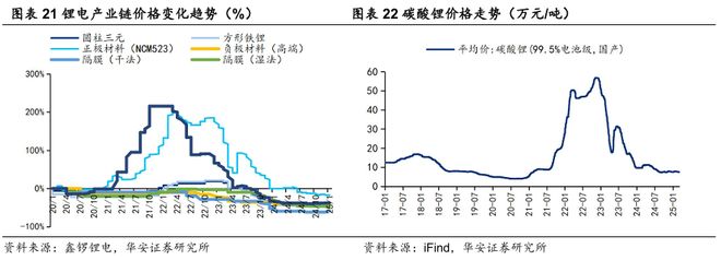 上游原料价格回调,电池环节盈利好转。经过前两年上游材料价格大幅波动阶段,利润中枢最终将导向电池环节。电池环节直接材料成本占比较高,原材料控制能力能够贡献差异化盈利。在过去原材料价格震荡调整时期,头部电池厂商通过资源自供、采购策略设计和技术降本构建护城河。根据GGII预测,在行业价格止战,产能退潮的背景下,2025年全产业链盈利有望迎来修复。未来在产业链价格机制调整下,整体行业利润越加朝向均值回归。