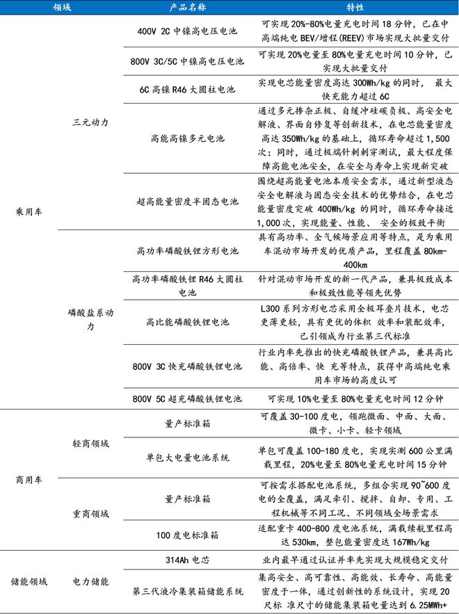 技术持续突破,核心竞争力不断提升。公司提出了“能量与资源的极致平衡、能量与安全极致平衡,设计与制造高度融合”的创新发展核心理念,以高压化、高锰化、无钴化和固态化为导向,建立了一套行业领先的、高效的研发体系,展现出高效、系统、强大的底层技术创新能力。在材料创新方面,公司聚焦5V高压镍锰酸锂材料、新型超快充硅碳材料、兼顾超快充&长寿命新型电解液添加剂、新型全固态电解质材料等关键材料,完成一系列重点技术突破。在高性能电池技术方面,公司完成高比能5C超充磷酸铁锂、6C超充高镍圆柱、高锰铁锂电池技术及产品攻关,实现高能效、超长寿命储能电池技术进一步突破。在新型电池方面,公司400Wh/kg高比能、高安全混合固液电池产品进入产业化阶段,热安全、日历寿命等核心指标行业领先;高能硫化物全固态电池完成关键技术阶段突破。未来随着固态电池技术的进一步突破,固态电池在高端新能源汽车和飞行器、人形机器人等领域的应用将逐渐增多,推动行业竞争格局向多元化方向发展,技术研发实力强、创新能力突出的公司有望迎来更多的发展机遇。